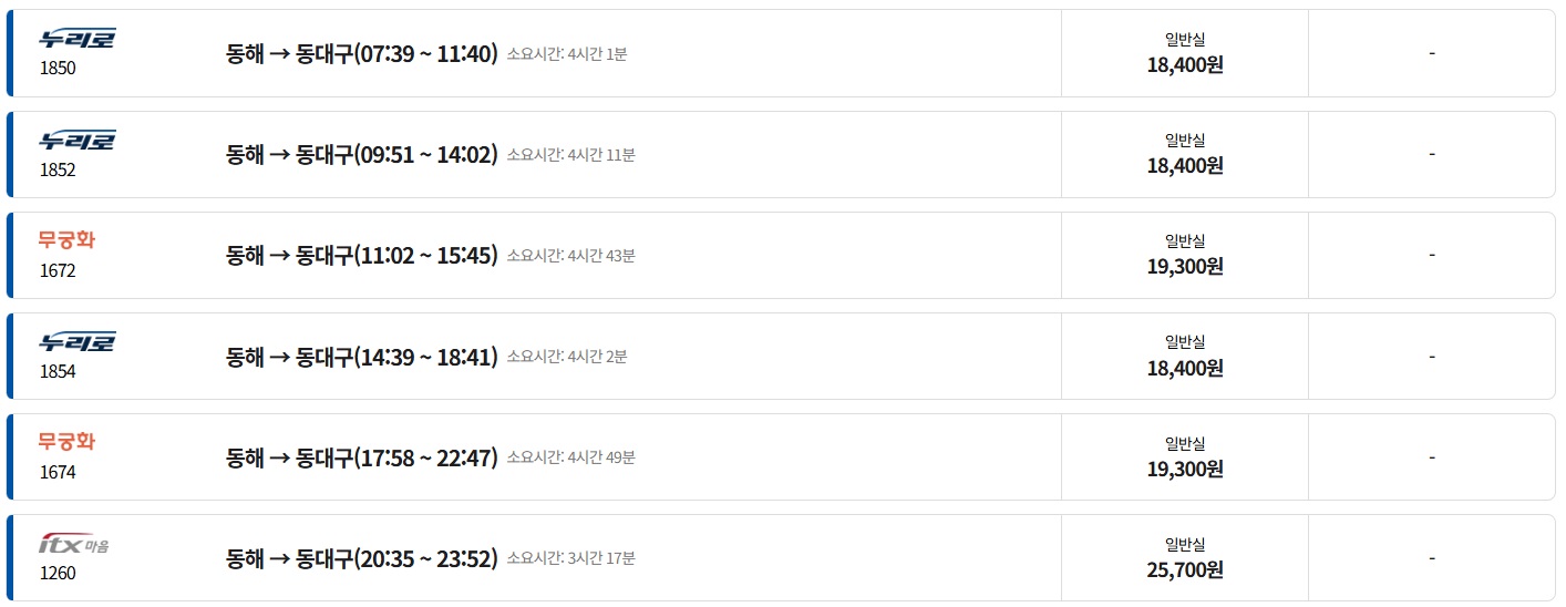 동해역에서 동대구역 간다고 하니까